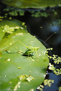 It's hot. 100 degrees with a heat index of 112. This katydid (formerly known as a praying mantis,still missing its hind leg) has been hanging out on top of the lily pads in my rain barrel. It's doing okay. Unfortunately, the koi haven't. We have lost five today. This Dragon Summer (my year!) has been brutal on the wildlife, the flowers, the trees. In a few weeks I'll be four in Dragon Years. I started running, maybe trying to turn back the decades to Dragon Year 2, or even 1. Who runs in this weather?! Crazy dragons, I guess. They say that Dragon Years are lucky. I'm beginning to wonder. The last horrible heat spell, 1988, Tom's birth year, was a Dragon Year, too.